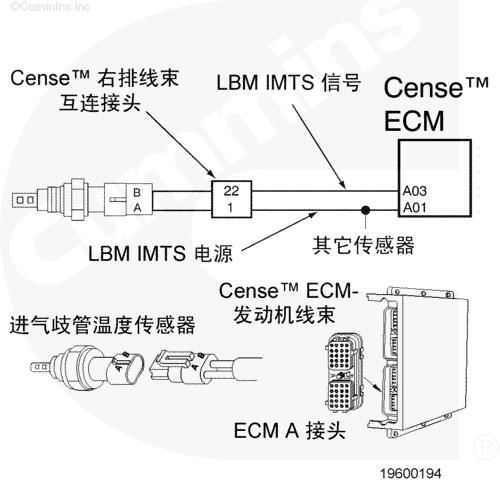 右排中間進氣歧管溫度傳感器向 CENSE™ ECM 提供右排中間進氣歧管空氣溫度信號。