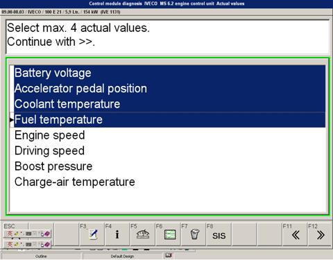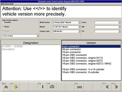 F12 至繼續選擇菜單,再次選擇菜單上用于車輛時別的要求的參數(驅動型式、車型、型號等)可以被選擇。