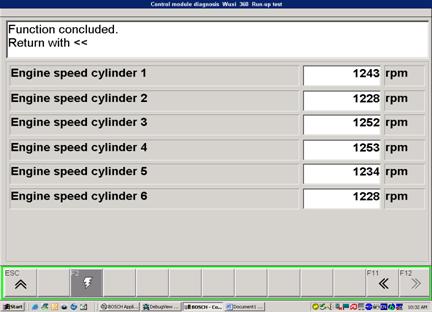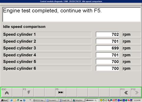 怠速比較測試時,KTS提供特定發動機轉速(如700/RPM),同時ECU取消發動機怠速控制功能,讀取各缸轉速。