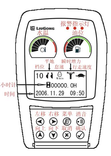 按菜單鍵進入主菜單,使用信息->系統報警信息,報警信息一共4個,分別是電壓、液壓油溫、機油壓力、水溫。