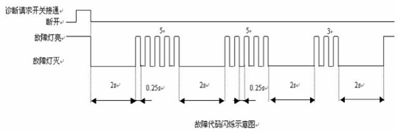 按下—松開診斷請求開關(guān)即可激活閃碼。每一次操作只閃爍一個故障碼,依次進(jìn)行即可讀完所有故障碼。