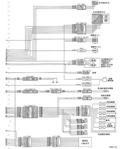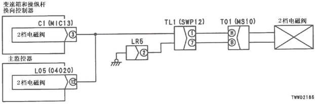 1)2檔R電池閥故障 2)變速箱和操縱桿控制器C1(雌)(10)-TL1(2)-T01(G)之間線束與電源短路,與機(jī)箱接地短路,觸點(diǎn)有故障或斷開(kāi) 3)機(jī)箱-TL1(7)-T01(B)之間線束與機(jī)箱接地短路,觸點(diǎn)有故障或斷開(kāi) 4)變速箱和操縱桿控制器有故障 | ||||