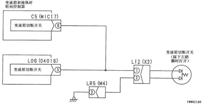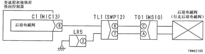 1)R電池閥故障 2)變速箱和操縱桿控制器C1(雌)(9)-TL1(6)-T01(D)之間線束與電源短路,與機(jī)箱接地短路,觸點(diǎn)有故障或斷開(kāi) 3)機(jī)箱-TL1(7)-T01(A)之間線束與機(jī)箱接地短路,觸點(diǎn)有故障或斷開(kāi) 4)變速箱和操縱桿控制器有故障 | ||||