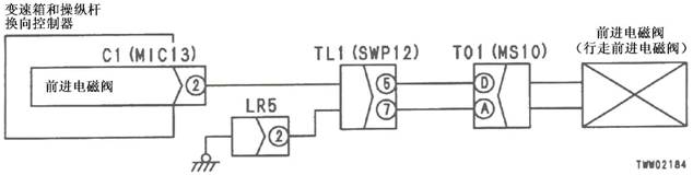 1)F電池閥故障 2)變速箱和操縱桿控制器C1(雌)(2)-TL1(5)-T01(D)之間線束與電源短路,與機(jī)箱接地短路,觸點(diǎn)有故障或斷開(kāi) 3)機(jī)箱-TL1(7)-T01(A)之間線束與機(jī)箱接地短路,觸點(diǎn)有故障或斷開(kāi) 4)變速箱和操縱桿控制器有故障 | ||||