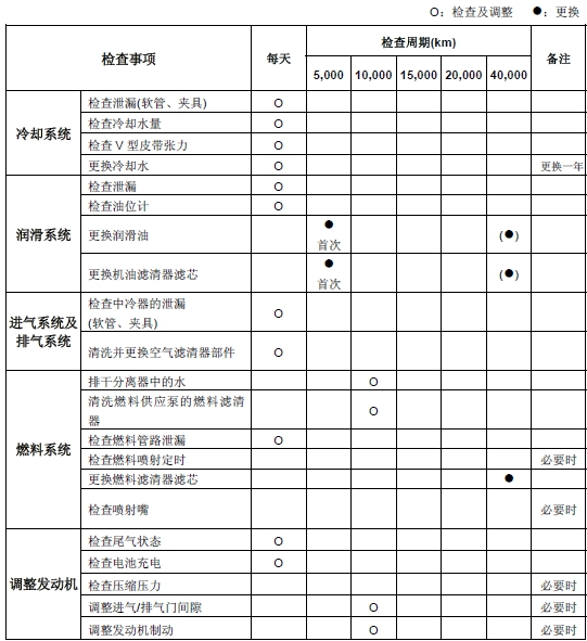 * (●) 機油更換間隔決定于發動機的使用和機油等級。