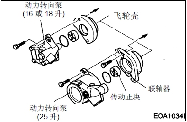 � 松開動力轉向泵固定螺栓,卸下動力轉向泵和傳動聯軸器。