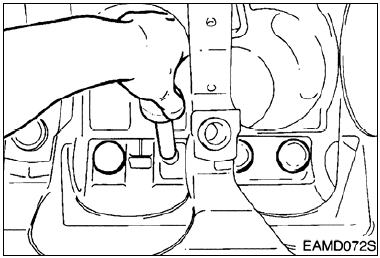 � 將主軸承裝入氣缸體內(nèi)并用發(fā)動機油涂抹主軸承。然后將有孔的軸承裝入氣缸體側(cè)壁,無孔的軸承裝入軸承蓋,小心不要弄混。