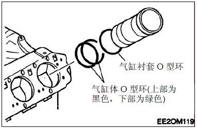 � 用完好的O 型環(huán)替換,上部插入氣缸套,下部插入氣缸體。