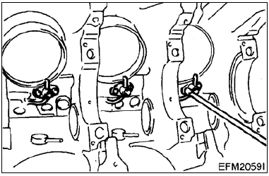 � 用機油涂抹連桿螺桿的螺旋部分和螺帽部分,涂到2~3 圈以后用指定的扳手?jǐn)Q緊(10kg.m+90°+10°)。