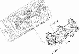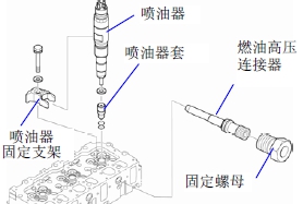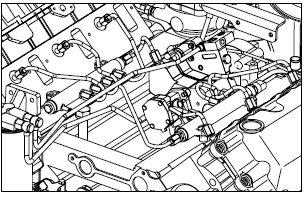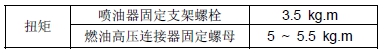 � 在共軌和燃油高壓連接器之間安裝燃油高壓管道,然后一個氣缸一個氣缸地緊固至規(guī)定扭矩。