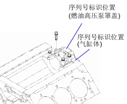 � 在檢查氣缸體和泵罩蓋序列號后組裝燃油高壓泵罩蓋。
