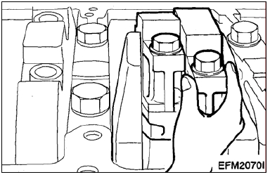 � 有必要用發(fā)動機油涂抹軸承蓋螺栓和螺栓座部件,按照擰緊順序用轉(zhuǎn)角法(90°+10°)以30 kg.m 的力度擰緊。擰緊順序如下。