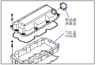 � 將機油濾清器蓋安裝到氣缸體,按對角順序擰緊螺栓。