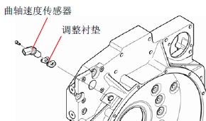 � 測量傳感器組裝部件和飛輪之間的間隙,使用調(diào)整襯墊進(jìn)行組裝。