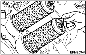 � 當(dāng)更換新的燃油濾清器時,在濾芯中加油后組裝燃油濾清器。