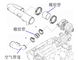 � 安裝空氣管道,然后將橡膠管連接到渦輪增壓器上并使用夾鉗組裝。