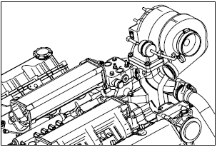 � 為排氣彎管安裝襯墊并安裝渦輪增壓器,旋緊螺栓。