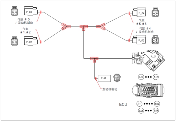 4) 噴油器和發(fā)動(dòng)機(jī)制動(dòng)線束