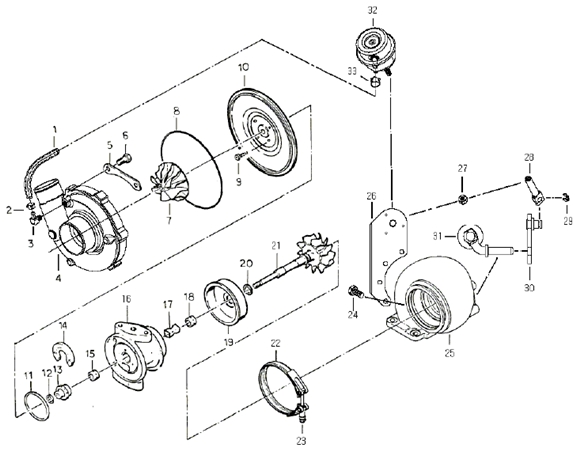 從發動機上拆下渦輪增壓器,然后檢查轉子軸向間隙或徑向間隙。拆下發動機時,確保塞好進油和出油端口。
