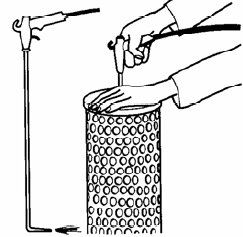- 氣槍應安有彎曲成90°的氣嘴,氣流可吹到濾芯的內面底部。