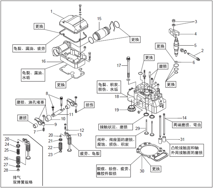 2. 進(jìn)排氣系統(tǒng)的解體,檢修,組裝