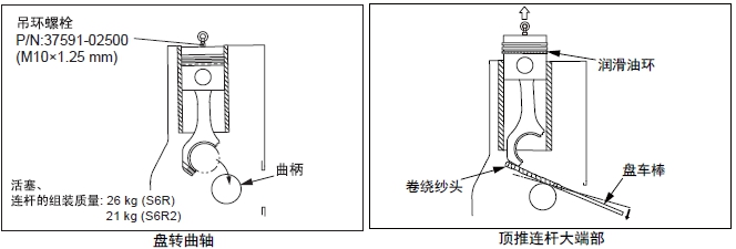 注: 彎曲和扭曲的檢測,在將連桿端蓋按照規(guī)定扭矩緊固后進(jìn)行。