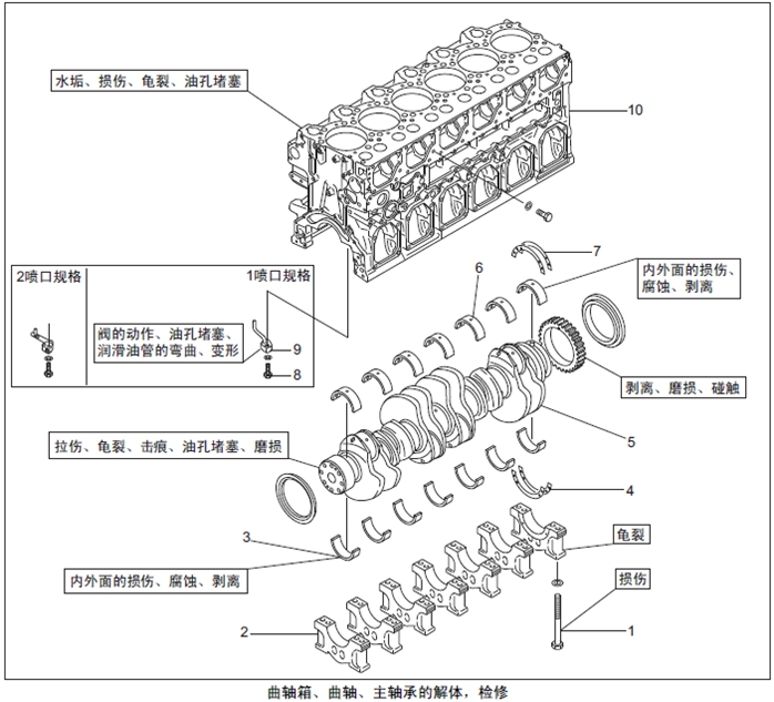 (2) 檢查曲軸箱的缸套安裝部位,確認(rèn)無壓損、腐蝕等異常。
