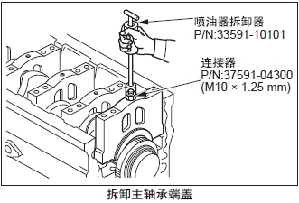 注: 主軸承端蓋的緊固要領(lǐng),參照「發(fā)動(dòng)機(jī)本體的組裝」的「安裝主軸承端蓋」項(xiàng)。