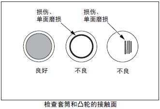檢查滑動(dòng)面有無有害的燒損、異常磨耗、異物嵌入或鍍層剝落等。發(fā)現(xiàn)異常時(shí),更換新品。