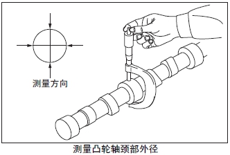 (1) 測量曲軸的曲柄銷和曲軸頸的外徑。超過極限值時(shí),使用減小尺寸的軸瓦,按照和減小尺寸軸瓦的規(guī)格研磨曲軸。使用-1.00 mm 規(guī)格的減小尺寸主軸瓦仍然超出極限值時(shí),更換新的曲軸。