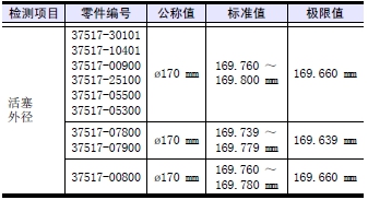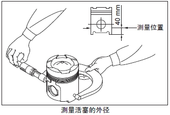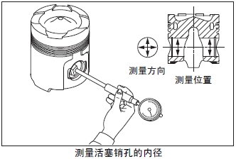 測量活塞銷孔的內(nèi)徑。超過極限值時(shí)更換新活塞。