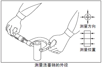 測量活塞銷的外徑。超過極限值時(shí)更換新的活塞銷。