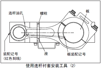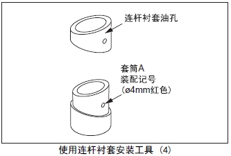 (1) 將新的連桿襯套的油孔對準(zhǔn)套筒A的裝配記號(ømm 紅色)裝在套筒A上。