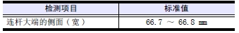 (2) 檢測連桿大端的側(cè)面( 寬)。不在標(biāo)準(zhǔn)值內(nèi)時(shí),更換新品。