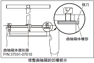 (1) 檢查曲軸箱的凹槽部分,確認(rèn)角部無裂損,與缸套凸肩下面接觸部分無單側(cè)接觸。有異常時(shí),修整曲軸箱的凹槽部分。