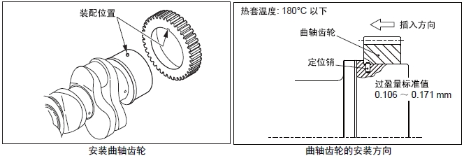 (1) 測量曲軸外徑和曲軸齒輪的內(nèi)徑,確認(rèn)過盈量。