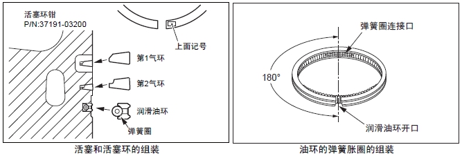 注意活塞環(huán)的不要上下反裝,反方向裝配時(shí),會引起發(fā)動(dòng)機(jī)燒損等故障。