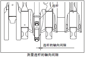 測量連桿的軸向間隙。超過極限值時(shí),更換故障原因的零部件。