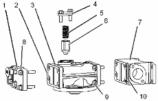 拆卸螺栓 (9) 。從發動機機油濾清器底座 (3) 上卸下接頭 (7) 和密封墊 (10) 。