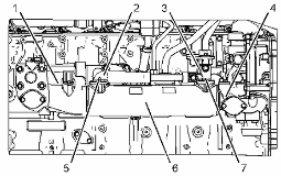 卸下發動機機油冷卻器芯 (6) 。從冷卻器進口彎頭 (2) 和歧管 (3) 上卸下 O 形密封圈。