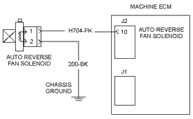 此診斷代碼與自動風扇反轉電磁閥有關。 FMI 05 表示 ECM 已確定電路中存在開路。