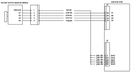 卡特彼勒365C和385C挖掘機發動機轉速旋鈕開關示意圖 |