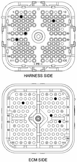 把鑰匙開關轉到斷開位置。 仔細檢查 J1/P1 ECM 接頭和 J2/P2 ECM 接頭。 徹底檢查每一個模擬傳感器的接頭。有關詳細信息,參考故障排除, "電氣接頭 - 檢查"。
