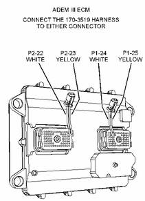 注: 請參閱圖 1 或圖 2。 170-3519 線束可以連接到 P1 接頭或 P2 接頭上。 選擇最容易靠近的接頭。