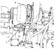 從渦輪增壓器上拆下供油管(6)和排油管(7)。