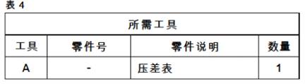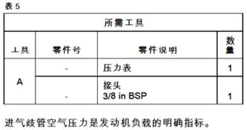 E將步驟4 d的結果與下述適當數值相比較。流過發動機空氣濾清器的空氣不得超過以下量:最大阻力3.71 kPa (149 in H:O2)