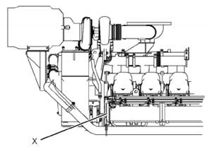 在4012-61A TRG發動機上為測量進氣歧管空氣壓力,特工具(A)連接至位置(X)。承載操作發動機。