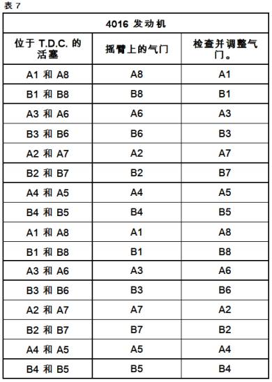 1拆下調整螺釘(1)。2拆下搖臂室蓋(2)。3拆下接頭(未顯示)。4對其余的搖臂室蓋重復步驟1至3。對于4016·61 TRG發動機按表7中所示的順序調整氣門間隙。