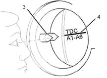 Note: the timing window in B row of flywheel shell.