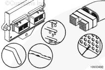 信號導線電阻 — 檢查:將測試導線插入發動機線束接頭的觸針 87。將鱷魚夾與萬用表表筆相連。將萬用表的另一支表筆接觸線束側燃油含水傳感器觸針 B 。測量電阻。萬用表 必須顯示為閉路(10 歐姆或更小)。如果測量值大于 10 歐姆,則信號電源導線中存在開路。維修導線,或更換 OEM 線束。